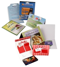 NORDANO tilbyder også totale færdige løsninger herunder påsættelse af kort på diverse emner og udsendelse af dette. Tryk her for at læse mere. Vi kan levere tryksager til brug for indpakning eller fremsendelse af kort f.eks. gavekort pakninger, carrier, foldere og etc.